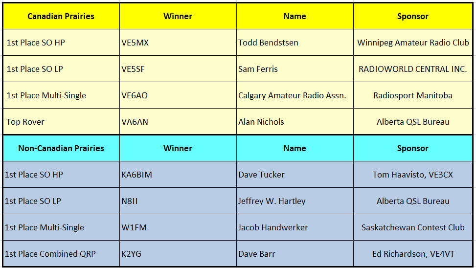 First Place – High Power In-Zone Award for the 2025 Canadian Prairies QSO Party (CPQP) to Todd Bendtsen VE5MX (left).