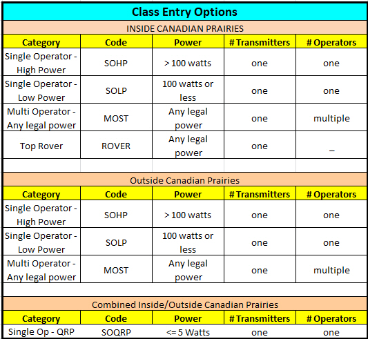 Stations outside of the three Canadian Prairie Provinces works as many VE/VA 4, 5 and 6 stations in as many electoral districts as possible.  Stations inside the Canadian prairie provinces work everyone.  Contacts between non VE/VA 4, 5 and 6 stations do not count for QSO credit.